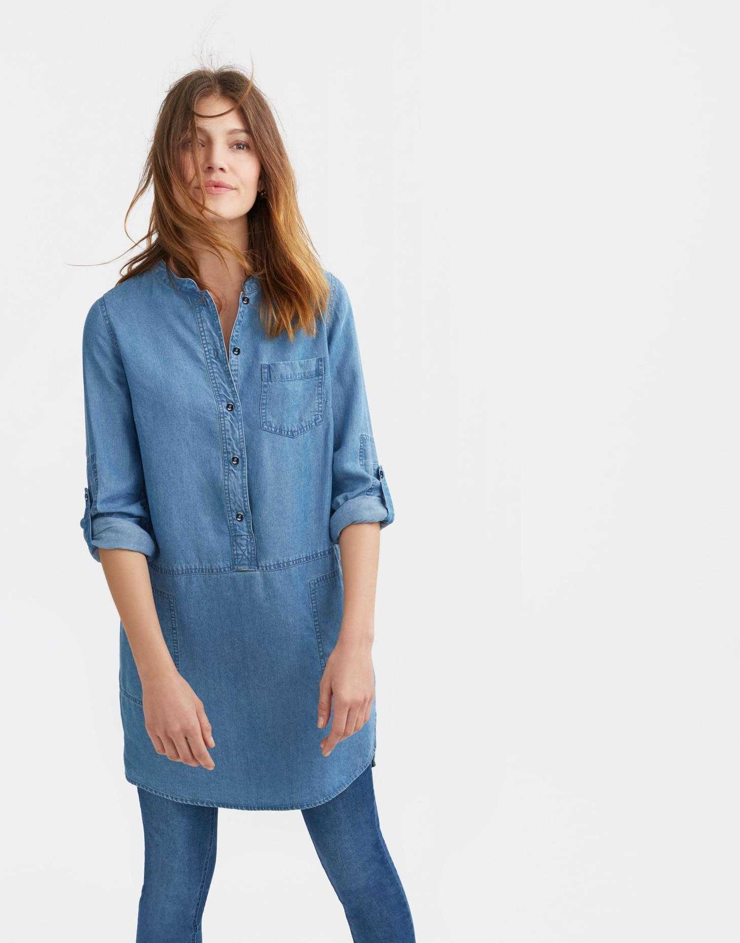 - Платья-туники и изделия рубашечного кроя сейчас находятся на пике популярности. Если дополнить лук широким ремнем, под низ можно надеть капроновые колготки.