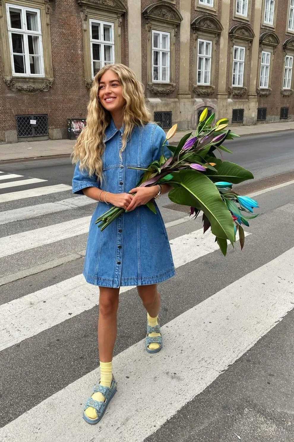 Летние – можно носить как самостоятельный наряд, в сочетании с шортами, джинсами, легкими летними брюками, прямыми и объемными юбками. Тренд 2018 – носки, гольфы, а также босоножки на значительного размера танкетке – отлично дополнят образ.