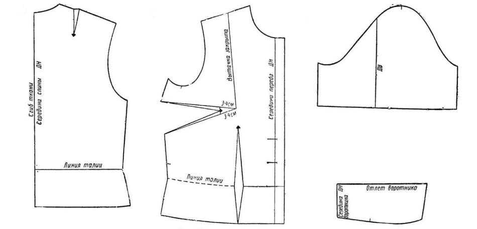 Обратите внимание, что на детали переда это расстояние откладывается по линиям наклона вытачек. Для построения новой линии плеча продлеваем её на 5 см и крайнюю точку опускаем на 1 см