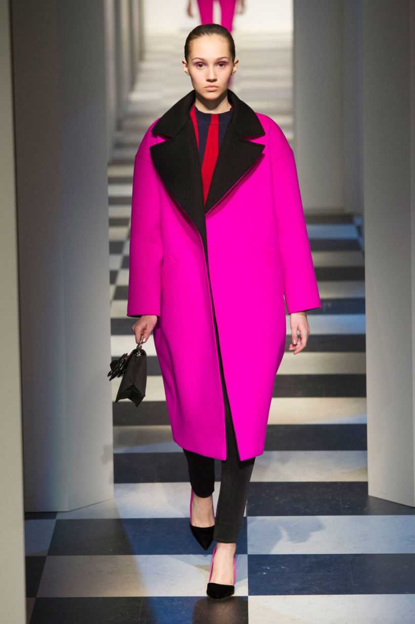 Чтобы контраст форм и объемов был более заметным, выбирайте пальто ярких цветов, как у Jil Sander.