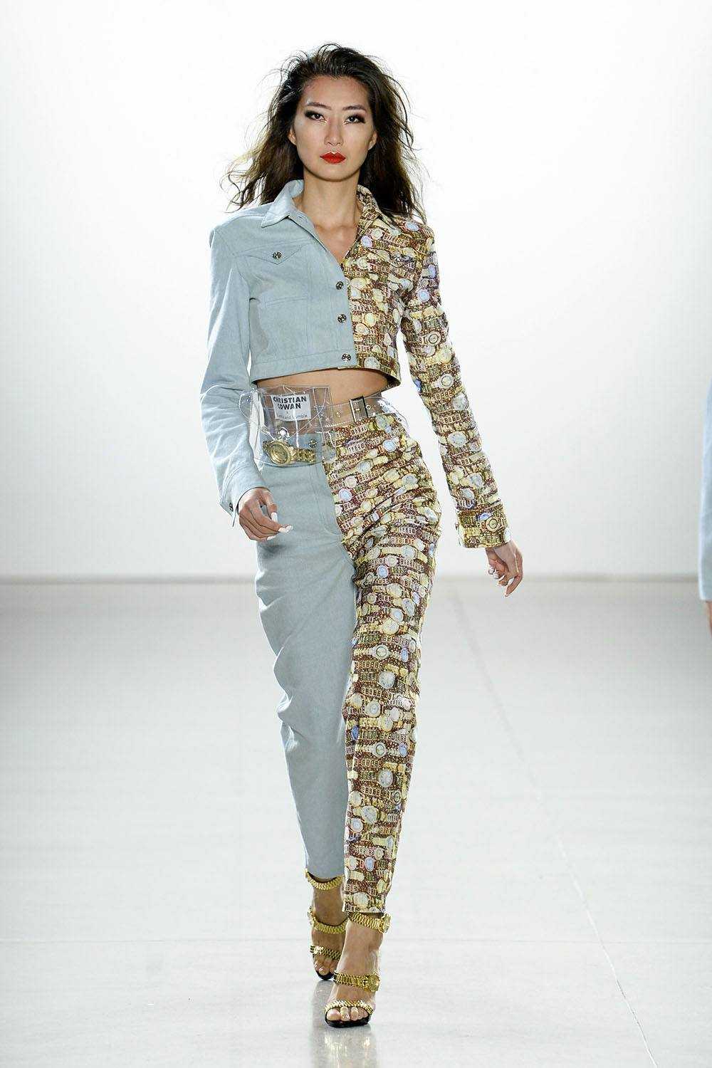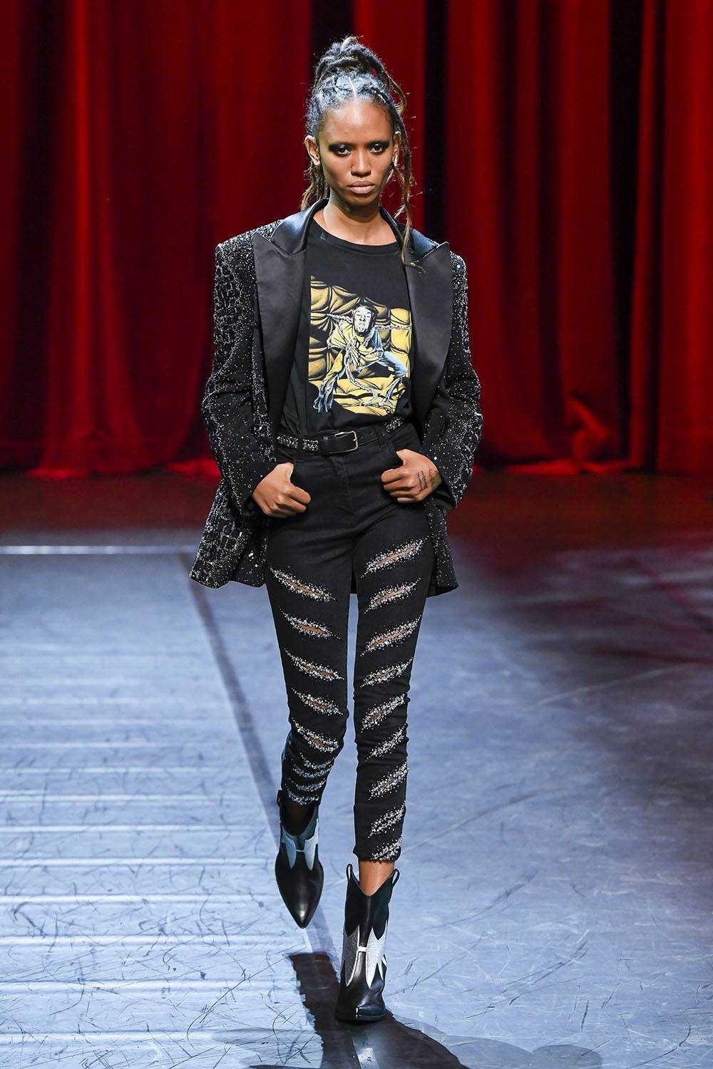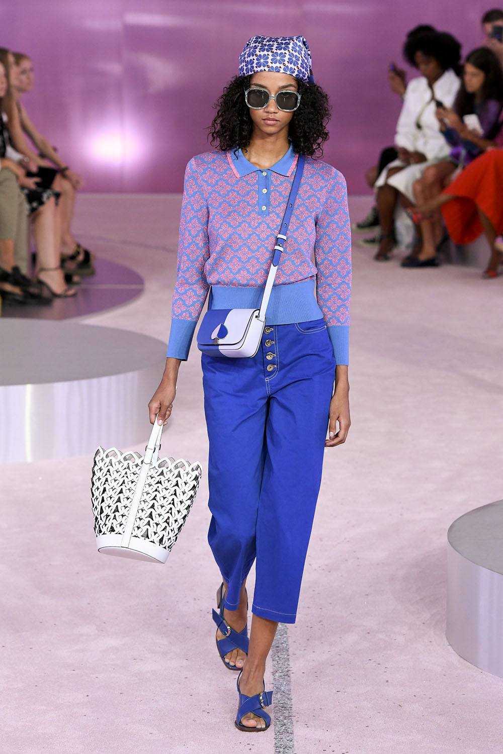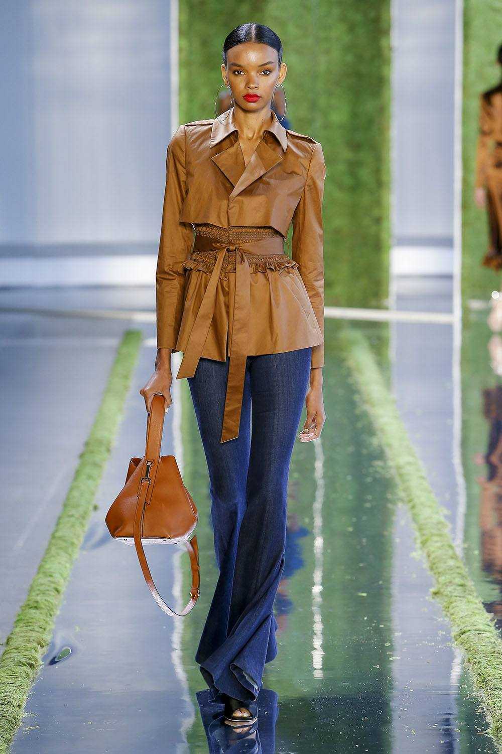 Zadig & Voltaire демонстрирует расслабленный образ, где есть всё: джинсы посветлее, джинсовая куртка потемнее, коричневые кожаные казаки, чёрная шапка, миниатюрная сумочка. Образ завершённый и демократичный: идеально для большого города. Если бы джинсы и куртка были сшиты из одного материала, получился бы скучный аналог комбинезона. Дизайнеры и модницы не любят такое однообразие оттенка.