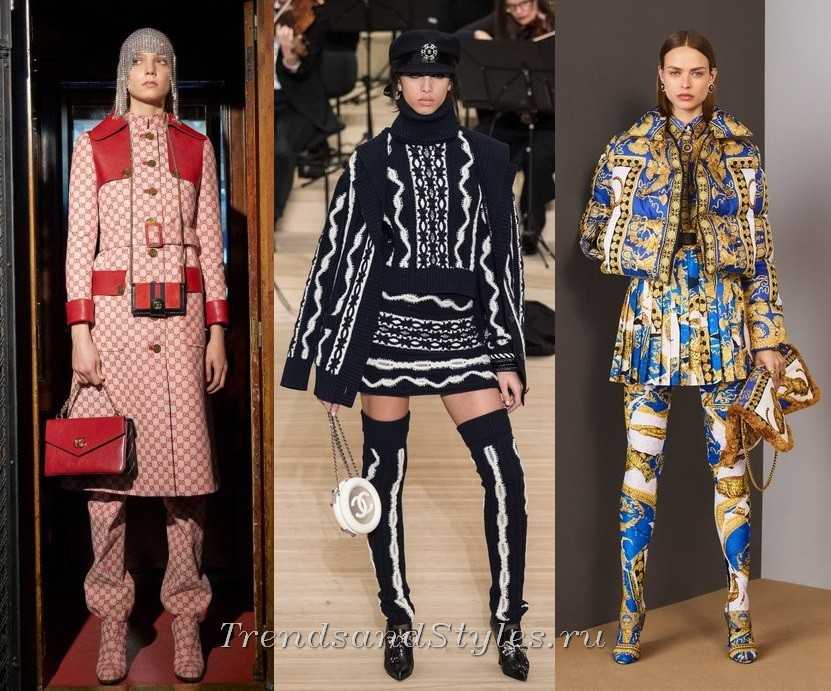 Модные образы в одном цвете и даже узоре подготовили именитые бренды. В таком исполнении можно приобрести комплекты в стиле 80-х от Гуччи, теплые трикотажные вещи от Шанель и ансамбли с известными брендовыми узорами, барочными завитками от Версаче.
