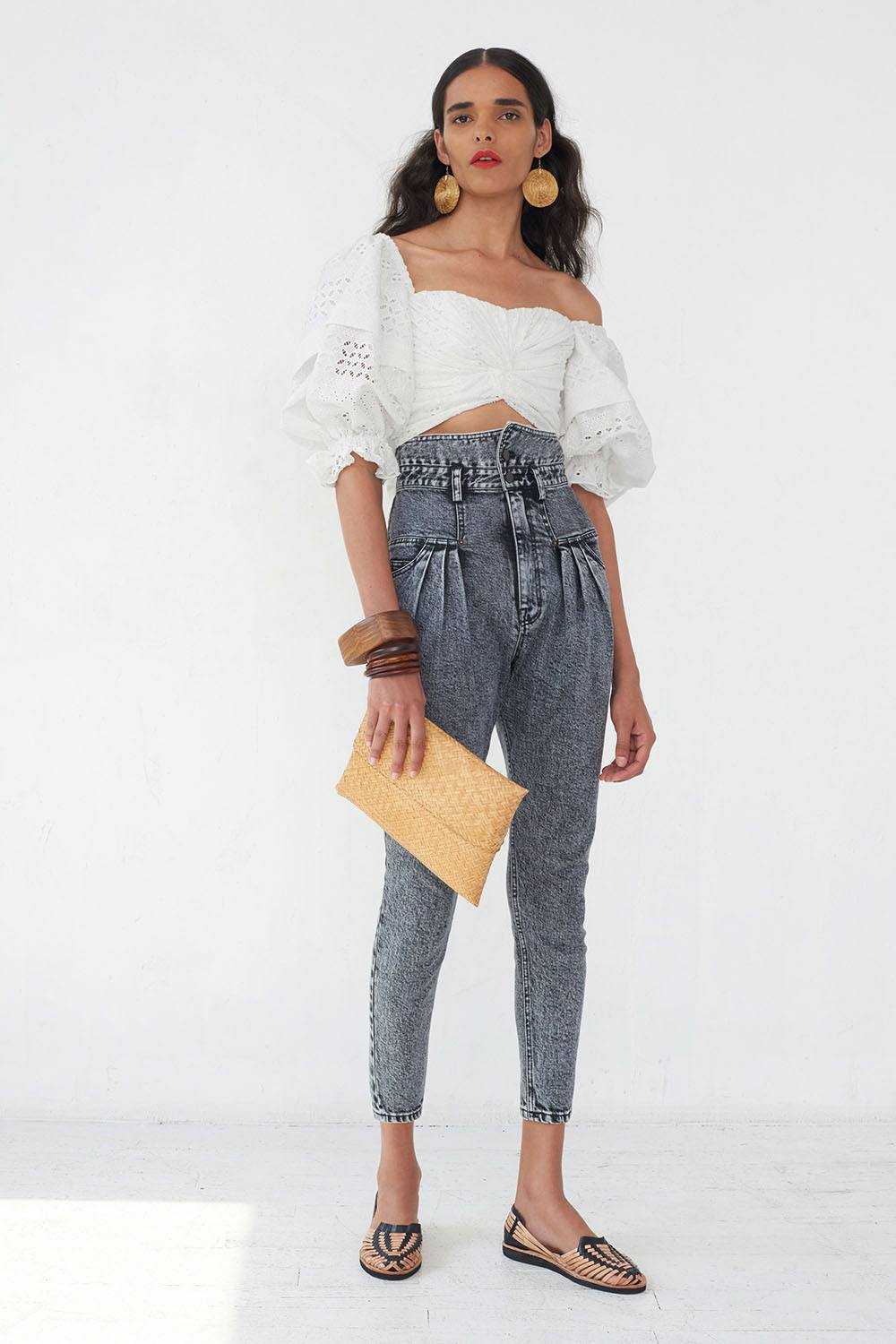 Есть небольшой животик, который еще не успели убрать с зимы? Тогда завышенная талия джинсов вас спасет. Она поможет скрыть недостатки талии, а в сочетании с корсетом прекрасно подчеркнет грудь.