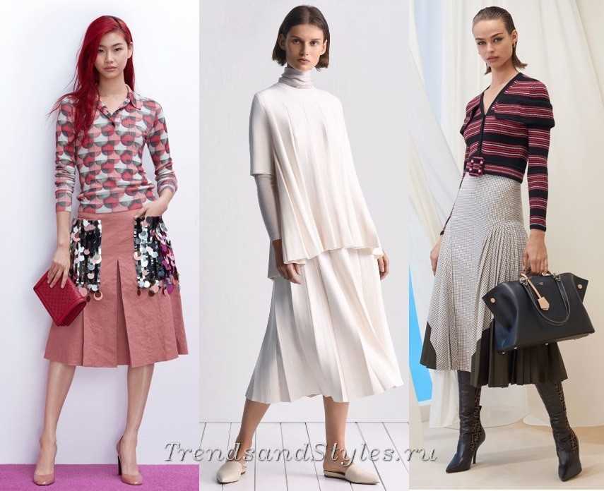 Плиссе на юбках, платьях и целых костюмах становится все крупнее, напоминая модную одежду второй половины 20 столетия.