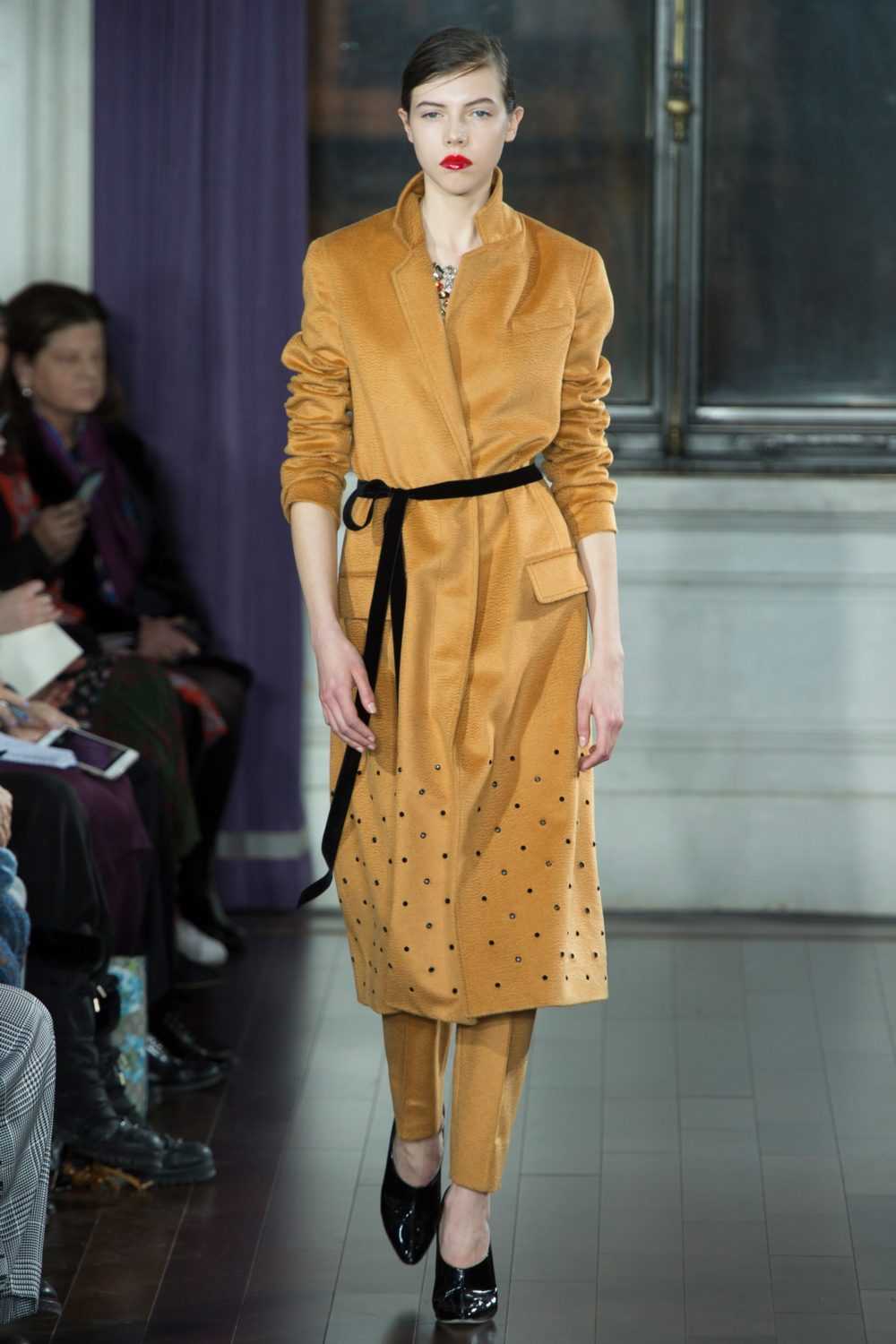 Совсем короткое женское пальто может стать альтернативой теплому осеннему пиджаку. И действительно, в показах модели до талии носили расстёгнутыми, с закаченными рукавами, в комплектах с короткими юбками, брюками в аналогичным исполнении, создавая осенние монокомплекты.
