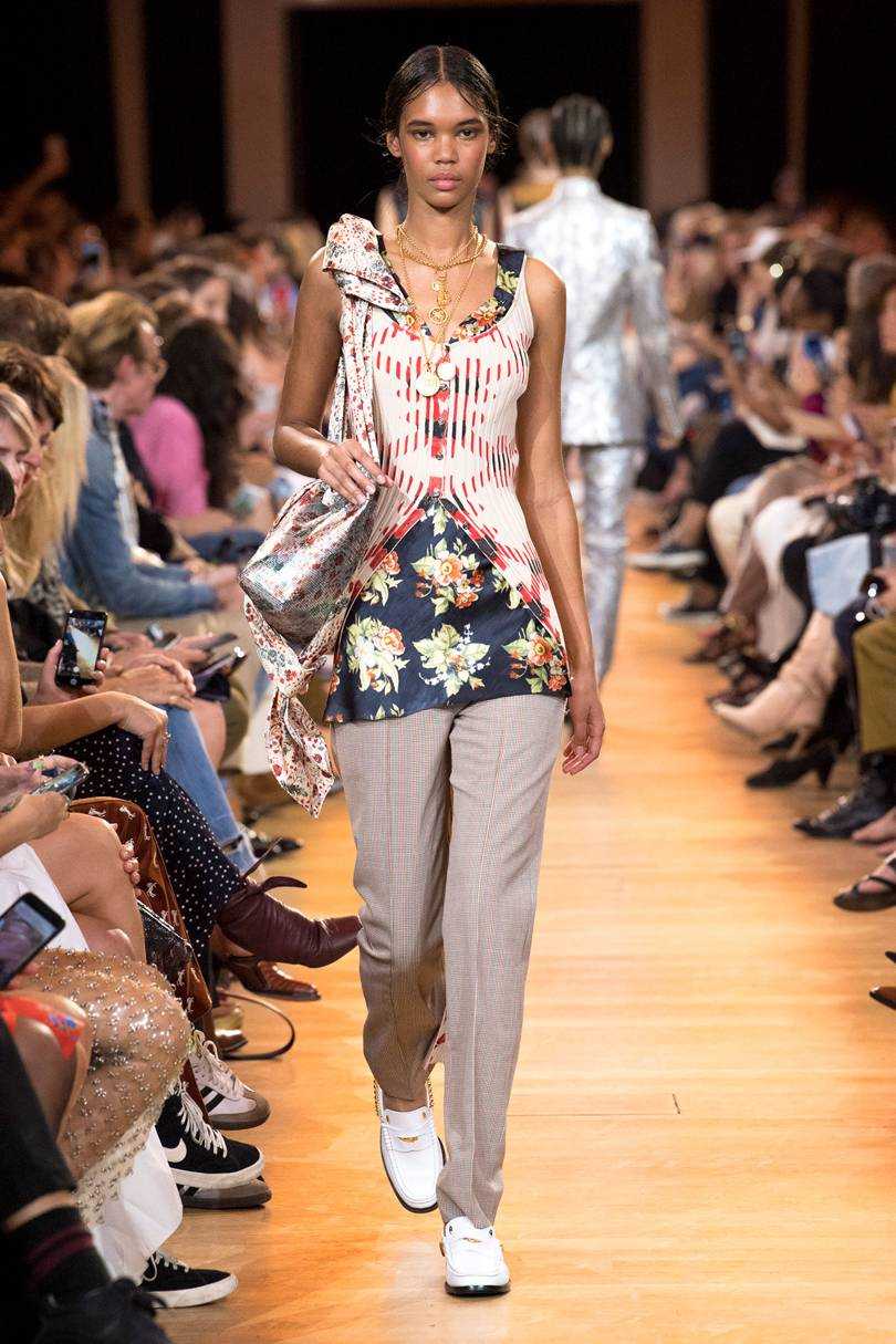 - Яркий декор. Разноцветные патчи, вышивки, надписи, логотипы, хештеги, металлическая фурнитура — тренд 2019 – 2020. Способны украсить самую обычную модель однотонного цвета. Сочетаем их с ярким топом, широкими штанами или шифоновыми платьями.