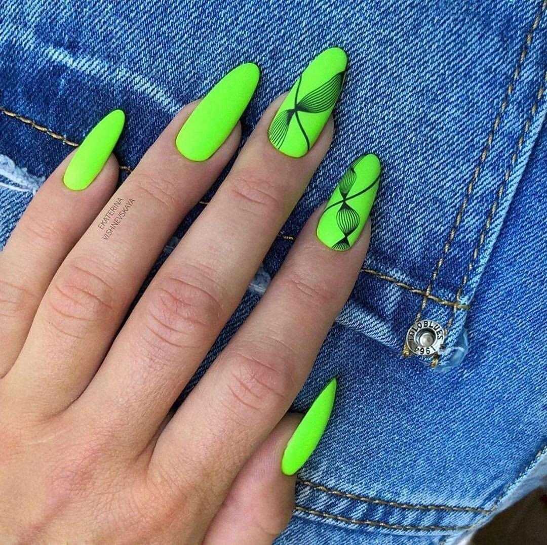 Стоит еще раз напомнить, что в летний период времени стоит экспериментировать со своим образом. Поэтому если вы еще ни разу не дополняли свой образ салатовым маникюром, то вам стоит обязательно попробовать. Его универсальное сочетание с другими цветовыми гаммами способно преобразить даже самые коротенькие ноготки. Довольно оригинально смотрится омбре, где салатовый оттенок лакового покрытия плавно переходит в нежно-желтый цвет. Очень часто можно встретить такой дизайн с кружевными вензелями. Также яркий салатовый оттенок мастера используют для геометрического прорисовывания.