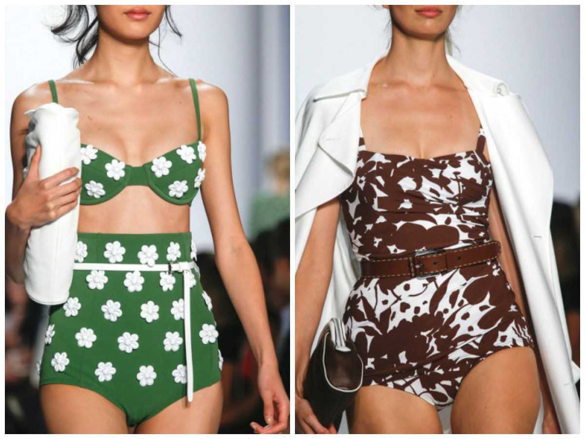 Многие дизайнеры в своих показах представили модели винтажном купал ников, украшенные рюшами и принтами в виде полос и горошка.