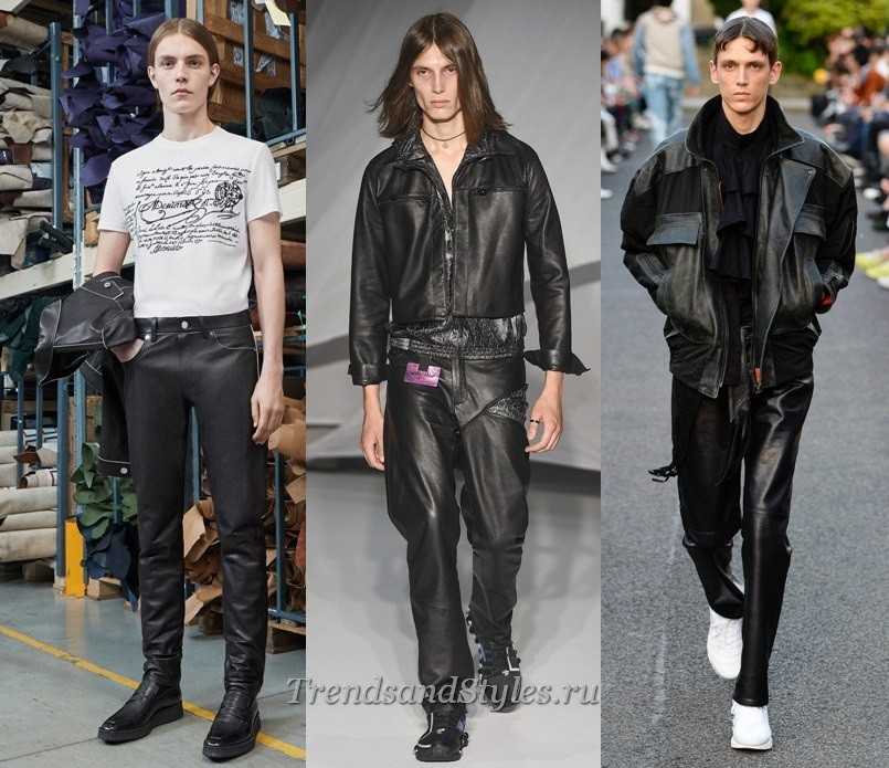 В кожаном гардеробе для мужчин доминируют приглушенные тона. Черные брюки, пиджаки и куртки могут составить базу для весеннего гардероба на каждый день.