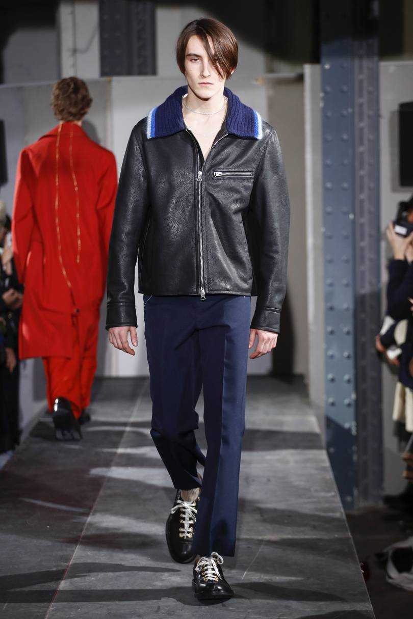 Трендовой новинкой можно назвать стеганые мужские куртки, сшитые на манер пальто в деловом стиле соответствующих цветов. Для молодых людей, предпочитающих направление business casual дизайнеры предлагают носить осенью-зимой 2018-2019 полосатые пиджаки в стиле Дики, которые в 80-е гг. были популярны среди поклонников хип-хопа и панка, куртки, укороченные до линии бедер, яркие синие ветровки или прозрачные дождевики в сочетании с костюмными брюками, рубашкой и галстуком.