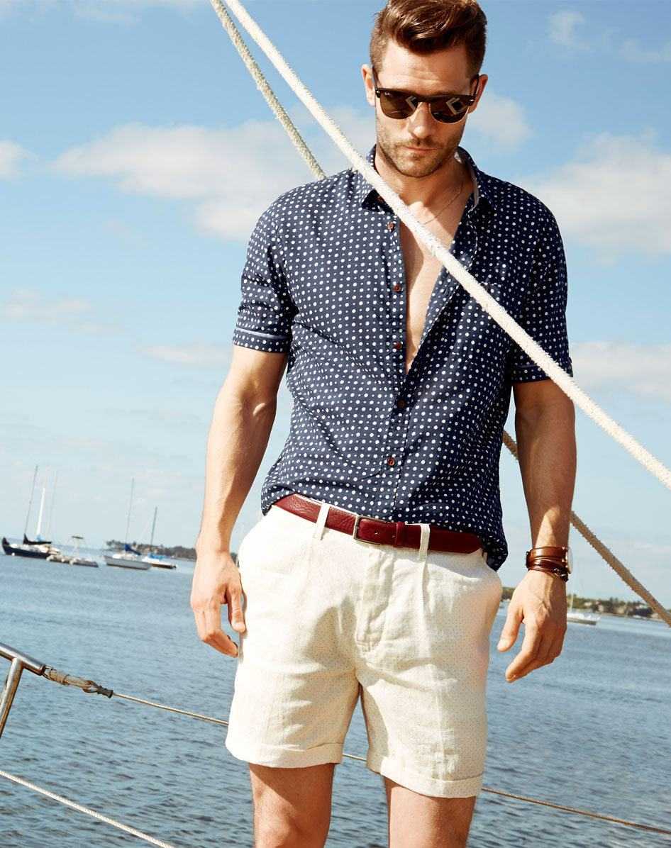 Идеальный выбор для летнего образа – парусиновые легкие туфли в сочетании со светлыми или темно-синими шортами. В качестве верха выберите белую рубашку-поло, стильные солнцезащитные очки и ни одна девушка не устоит перед вашим стильным образом.