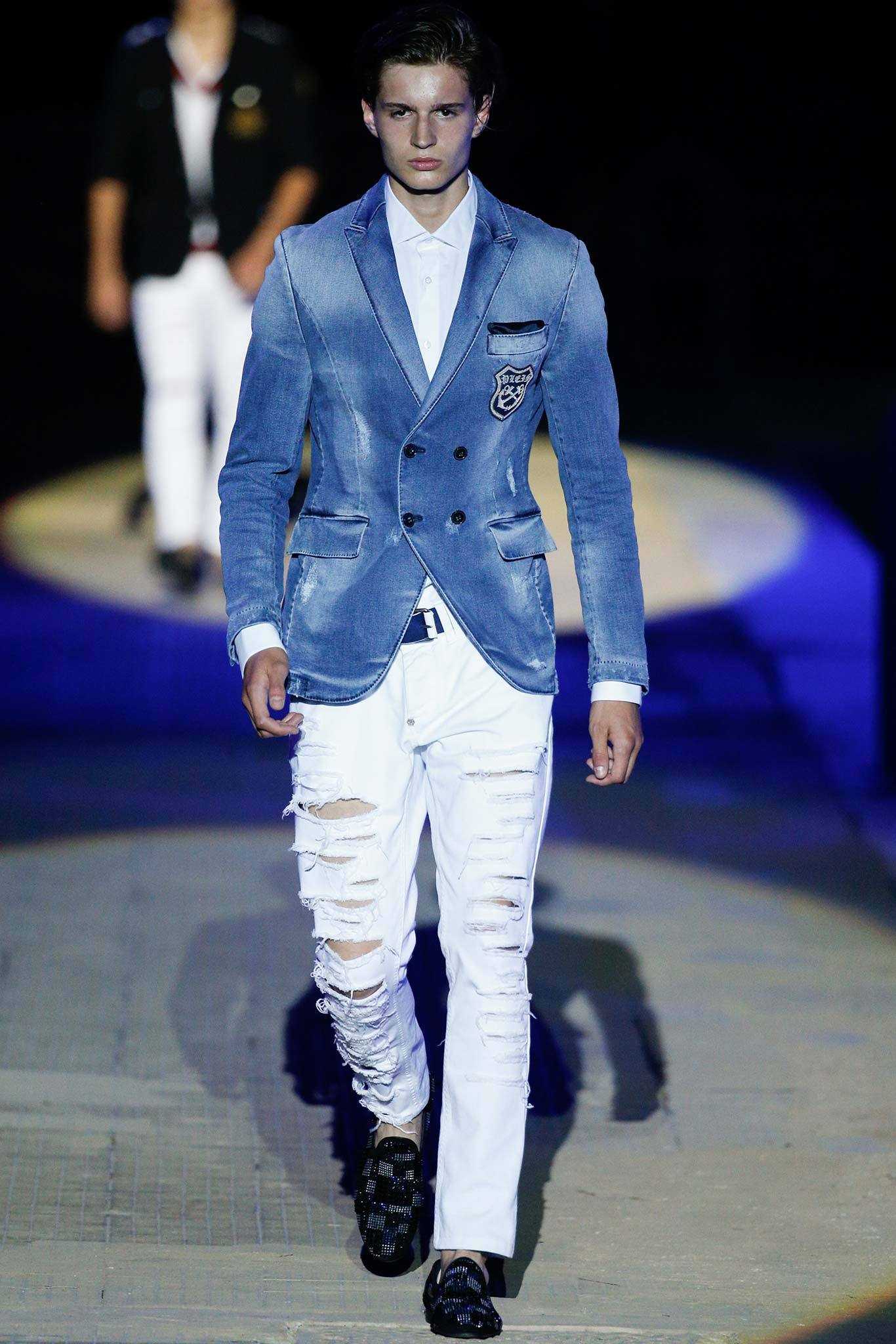 Одним из самых ярких трендов 2018 считаются модели с отворотами, джинсы с потертостями, без лишнего декора. Стразы, фурнитура, молнии-обманки в этом сезоне сведены к минимуму. Дизайнеры предлагают мужчинам стильные и лаконичные модули из денима с эффектом состаривания.