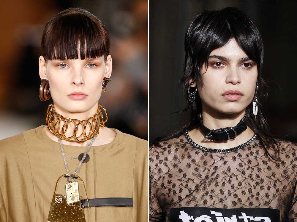 Уже который год подряд на модных показах дизайнеры представляют чокеры. Это крупные колье, плотно обволакивающие шею. Вариантов дизайна может быть масса – узкие, широкие, металлические, текстильные, пластиковые, тоненькие с бусинами или многоярусные.