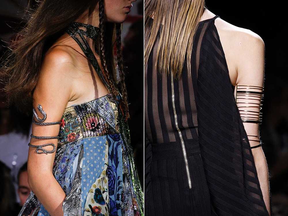 Также актуально носить браслеты на предплечьях, немного выше или ниже локтя.