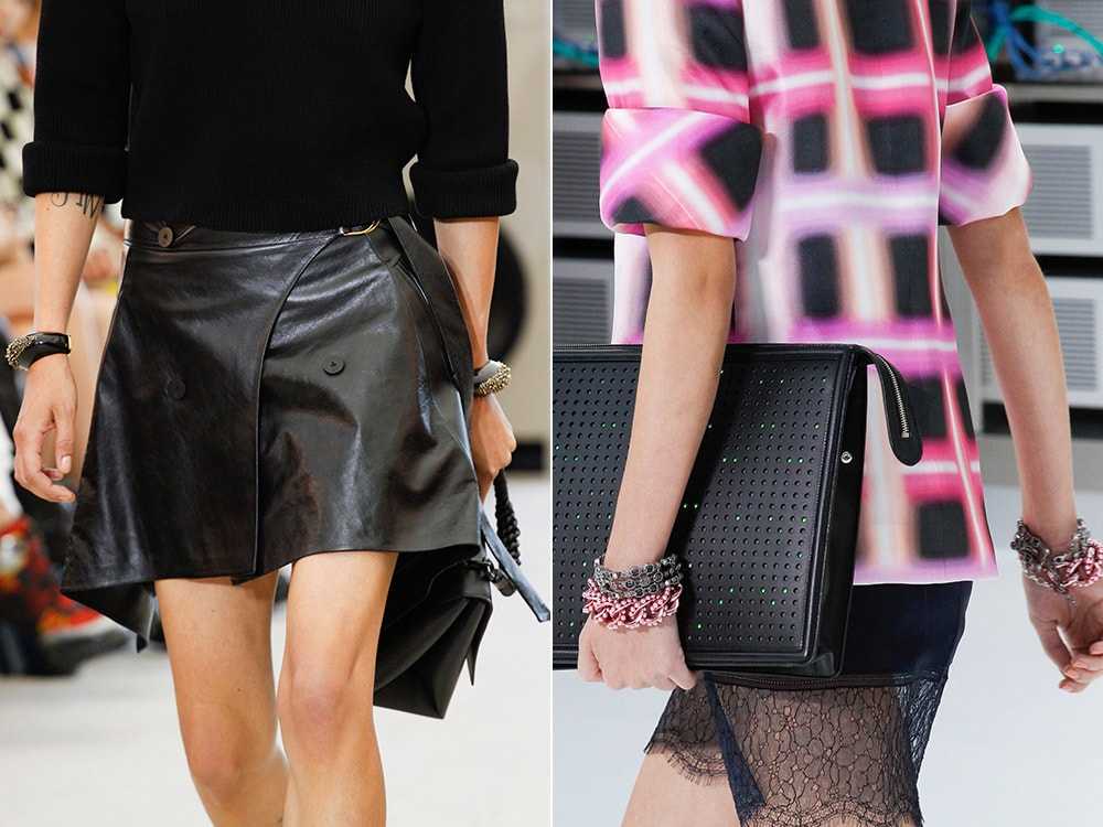 Продолжит нести бремя популярности модель из нескольких тонких кожаных шнурков с множеством мелких металлических элементов. В моде заплетенные косички их кожаного шнура, обвитые вокруг запястья в несколько оборотов и скрепленные металлическими элементами ажурной формы в разных точках. Более простые браслеты представлены несколькими нитями бисера в сочетании с тонкими кожаными шнурками или нанизанными бусинами ярких цветов.