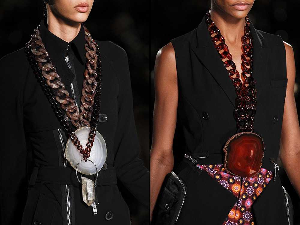 В сериях Givenchy встречаются этнические аксессуары из природных материалов. Творчество ювелиров восхищает своим креативных подходом, дизайнеры сделали акцент на природной красоте камня.
