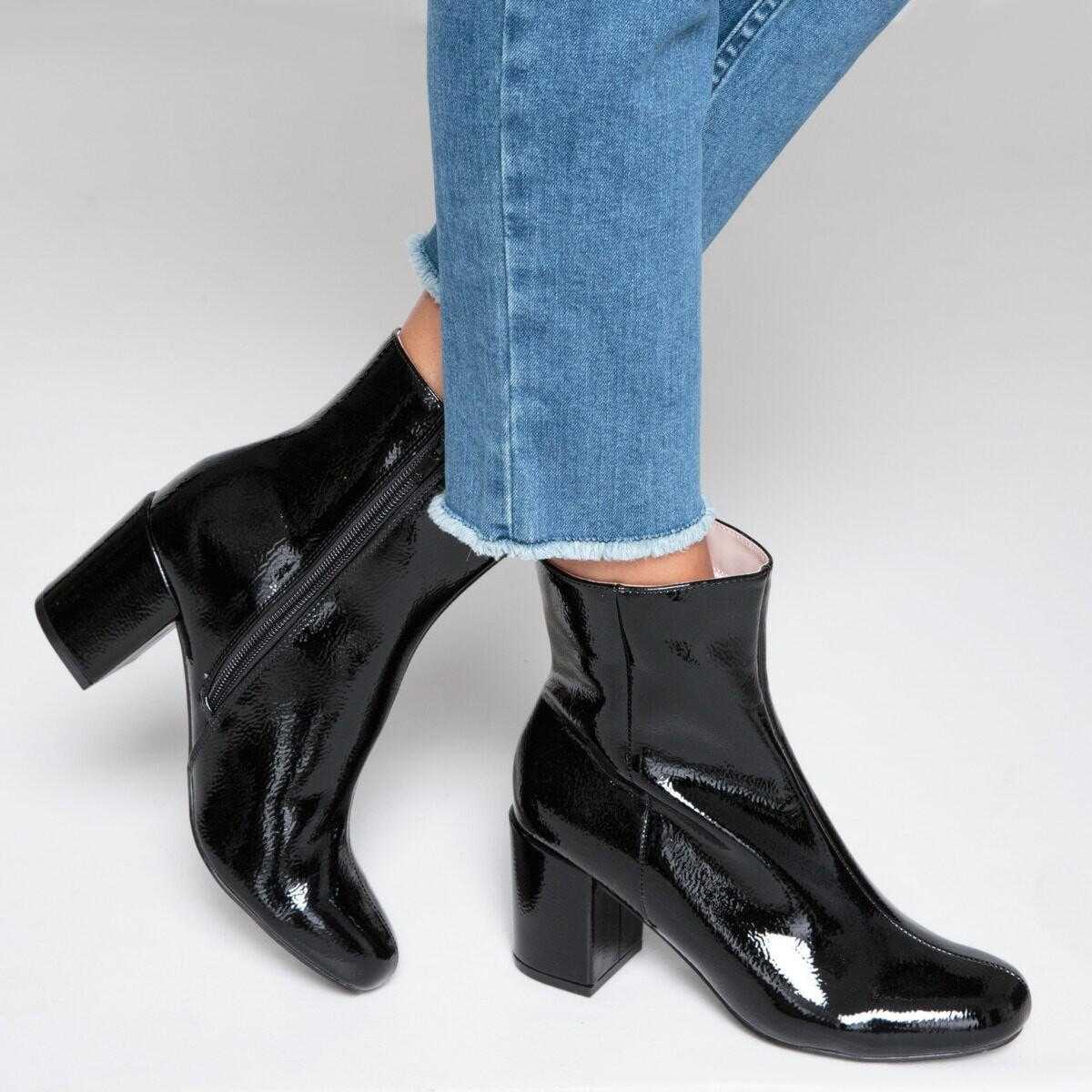 - Ботинки на маленьком каблуке. Относятся к прогулочному либо офисному типу. Прекрасно подойдут к брючному костюму или платью немного ниже колена. Данная модель отлично “вытягивает” девушек низкого роста, а модницы плотного телосложения зрительно станут худее. В таких мелочах проявляются настоящие чудеса!