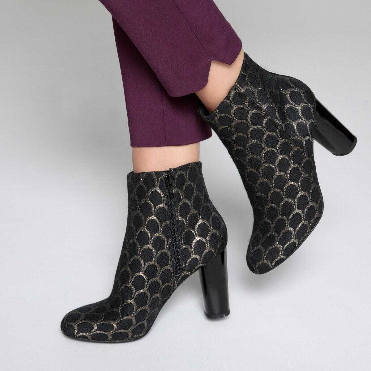 - Ботильоны на высоком каблуке. Идеальное сочетание с вечерним образом. Платье размера миди, укороченная кожаная куртка и модель обуви на высоком каблуке олицетворяют одновременно женственность и дерзость стиля. Прекрасным вариантом станет для свиданий и вечерних прогулок, ведь образ, несомненно, придает таинственность и шарм своей обладательнице.
