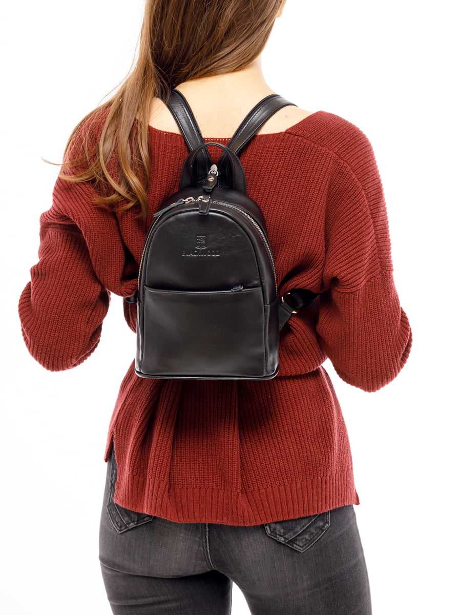 Женский кожаный рюкзак черного цвета идеален на каждый день. Его можно носить с джинсами и курткой-косухой, с юбкой-карандашом и каблуками, строгим костюмом или повседневным платьем.
