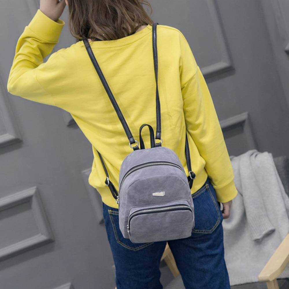 Стильные мини-версии рюкзаков не ограничены в дизайне. В моде брутальные варианты из кожи, в стиле гранж и рок, минималистичные однотонные, милитари, милые плюшевые варианты. Комбинация замши с бахромой определённо навсегда останется в моде. Подобные модели по душе модницам, предпочитающим одежду в стиле бохо. На замше также популярны этнические узоры и контрастная тесьма.