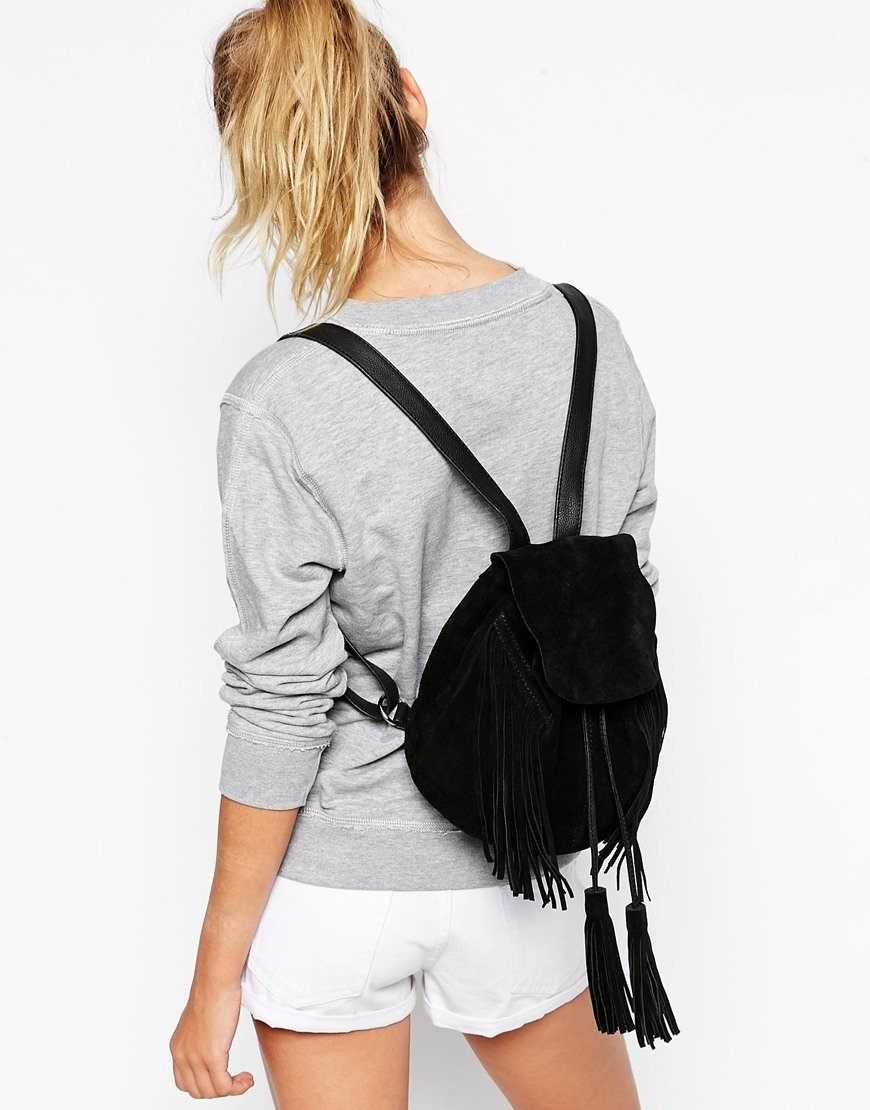 Бахрома из кожи и замши в тон рюкзаку, кажется, никогда не выйдет из моды. Пока будут среди модниц любительницы стиля бохо, до тех пор мы и будем видеть подобные элементы на аксессуарах.
