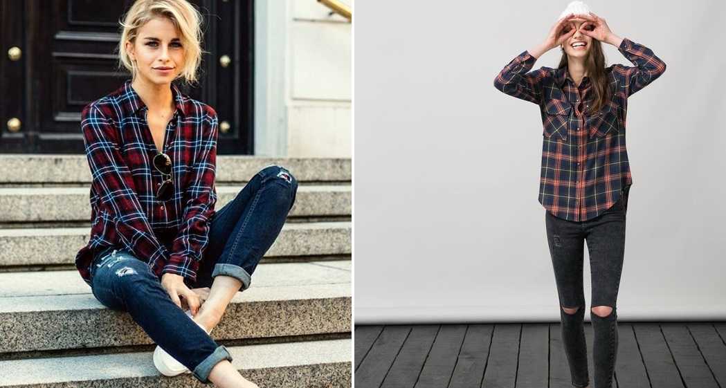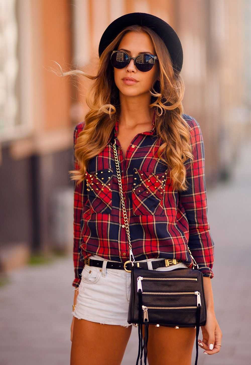 Но, конечно же, лучше всего женская рубашка в клетку сочетается джинсами и джинсовыми шортами (в сентябре, при этом заправляя только одну какую-то часть, с черными классическими кожаными брюками и юбкой). Что касается обуви, то подойдут кеды и кроссовки, слипоны или же рокерская и гранжевая.
