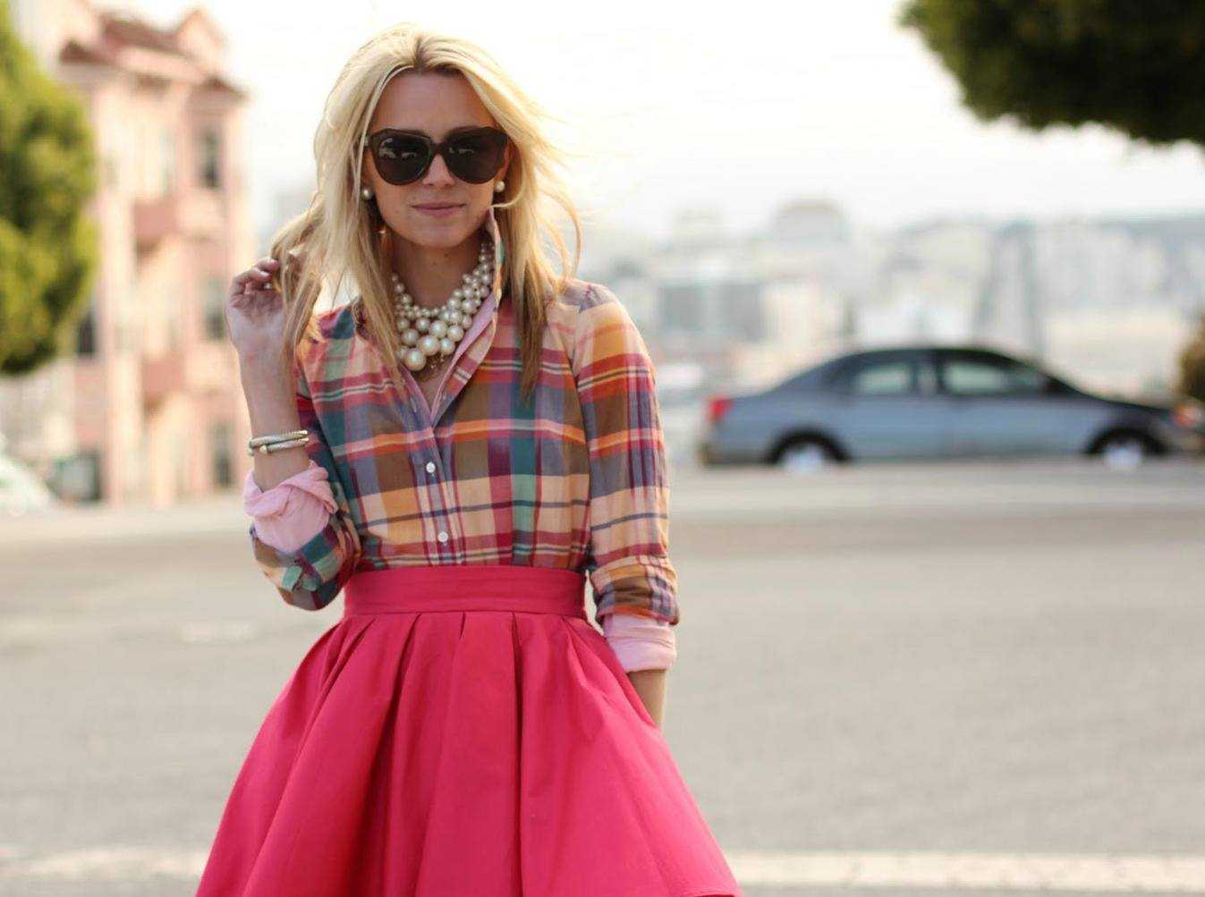 Осень — время года, когда клетчатая рубашка новиться одной из самых неотъемлемых вещей гардероба. В этом сезоне подойдет лук, состоящий из прямых брюк и классического блейзера. Дополнить его можно колье и строгой сумкой. Стоит отметить, что ношение колье поверх рубашки – тренд этого года. Что касается сочетания рубашек с юбками, то в этом случае стоит выбрать или карандаш, или пышный низ.