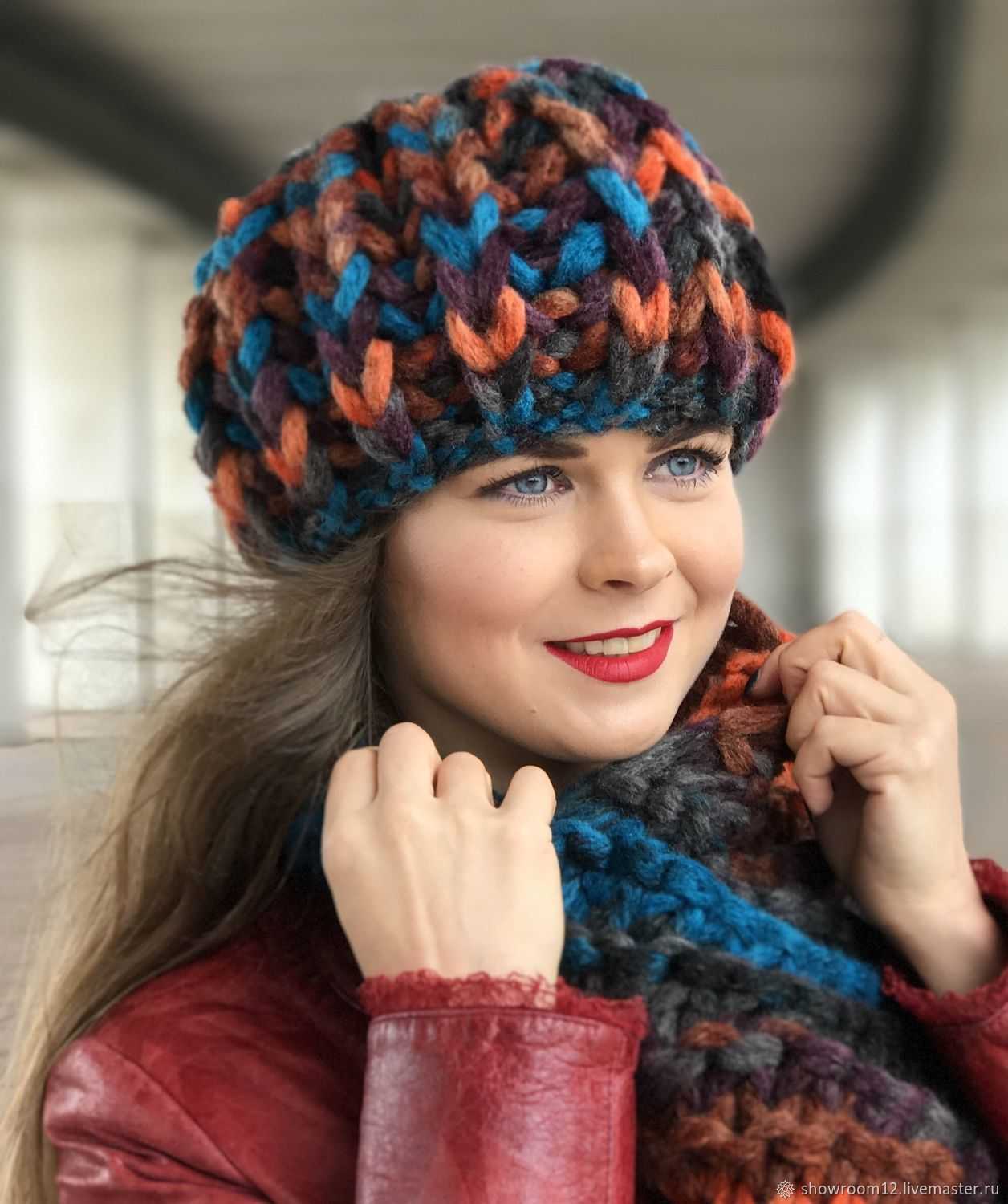 Мягкие, плотно облегающие голову трикотажные шапочки – оптимальный вариант женского головного убора для прохладной осени и морозной зимы. Вы можете стать обладательницей единственного в своем роде аксессуара, связав его из объемной пряжи за пару вечеров. Такую шапку легко снять в помещении, бросить в сумку и не беспокоиться о сохранности формы. Они сочетаются с разной одеждой, охотно принимают в свою компанию шарфы, варежки, муфты.