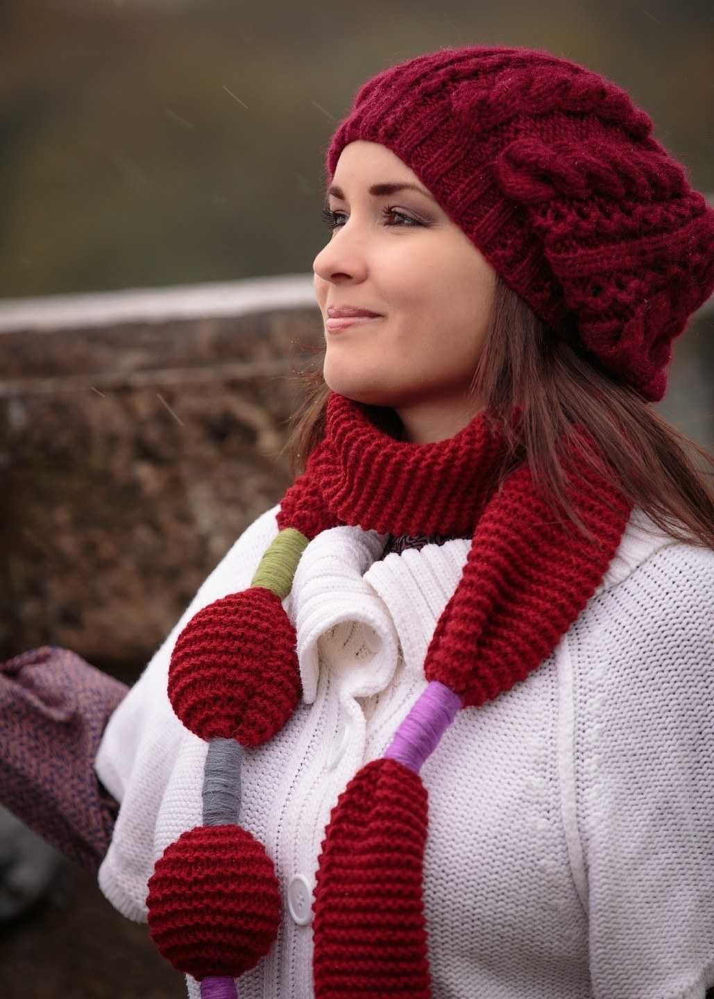 - Шапка и снуд брусничного цвета спицами для женщин с описанием.