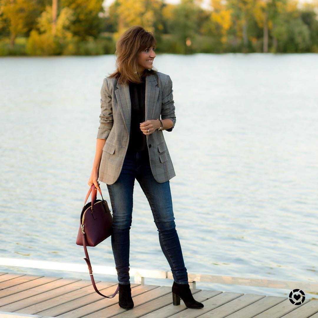 Блейзер – спокойного оттенка без принтов или в модную сейчас клетку;