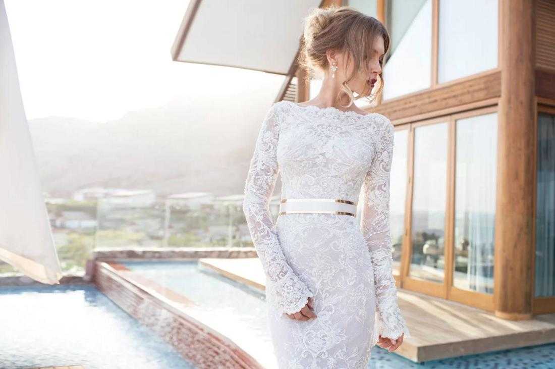 Есть платья с длинными рукавами, выполненные так, что верх и низ ручки украшает кружево, а между ним прозрачная ткань, заметная не сразу. Самый модный рукав – кружевной. Он придаст невесте мягкости и женственности.