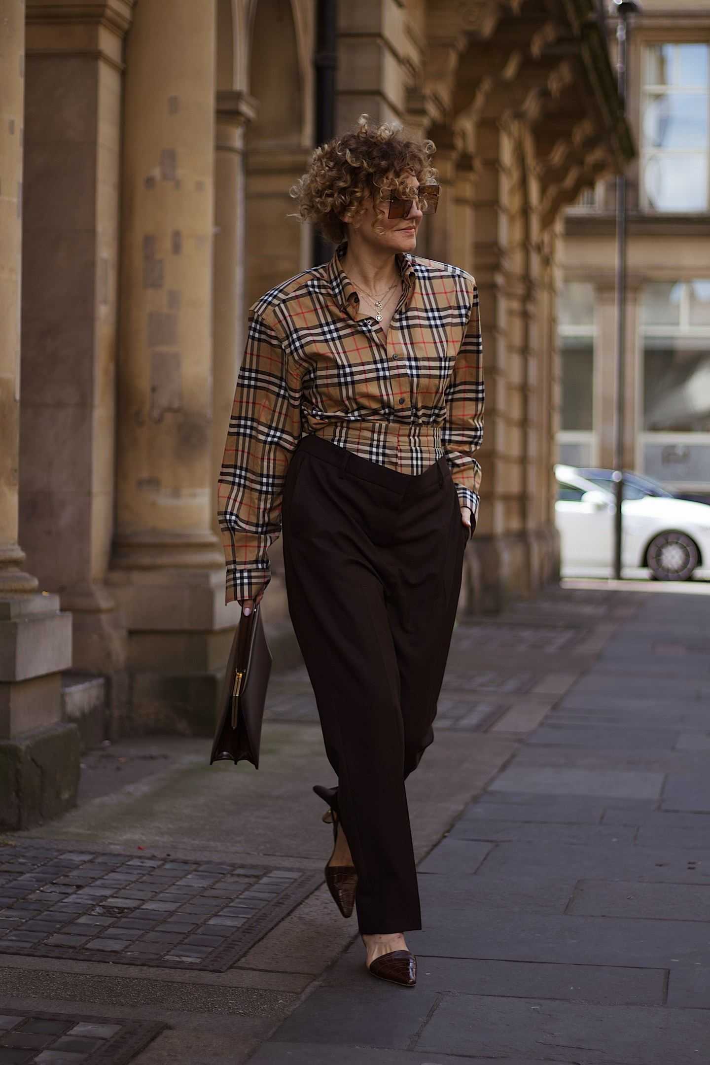 Для современных женщин, которые любят подчеркивать свою любовь к моде, идеально подходит тотал лук в клетку. А более консервативным обязательно понравится сочетание черного платья-рубашки с серым пиджаком в тонкую клетку.