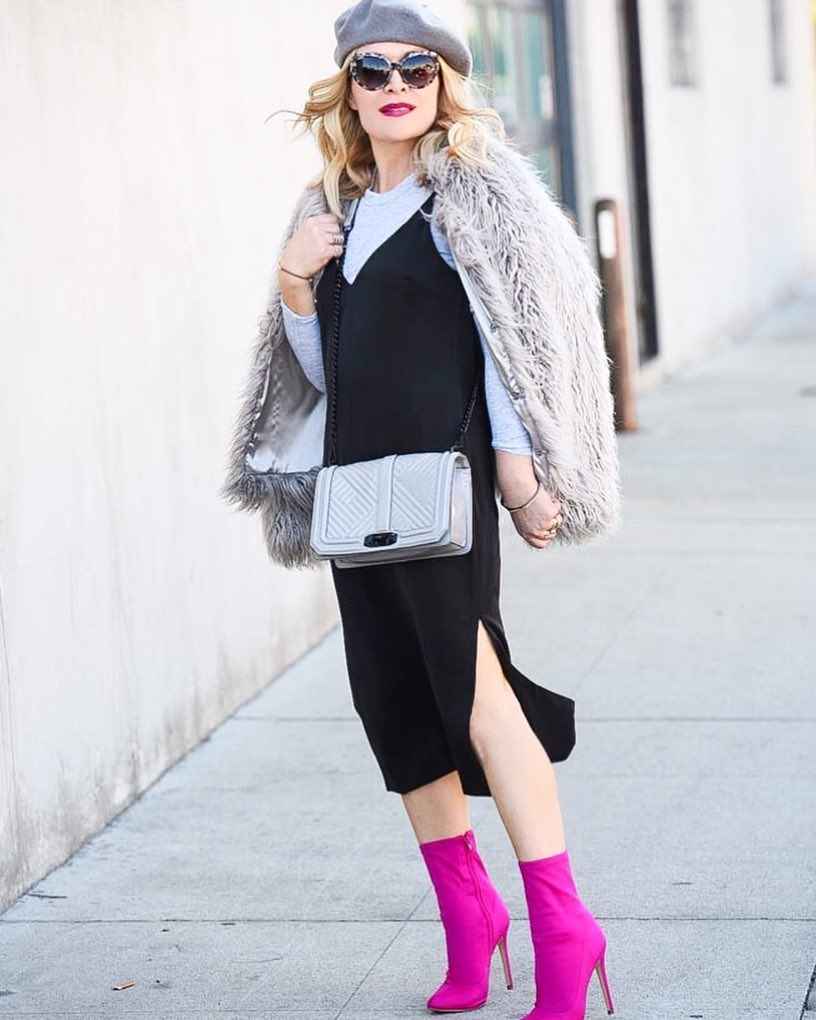 Данный вариант женского гардероба способен привлечь любое внимание общества. Сапожки цвета металлик идеально сочетаются с черным платьем и пальто темного оттенка