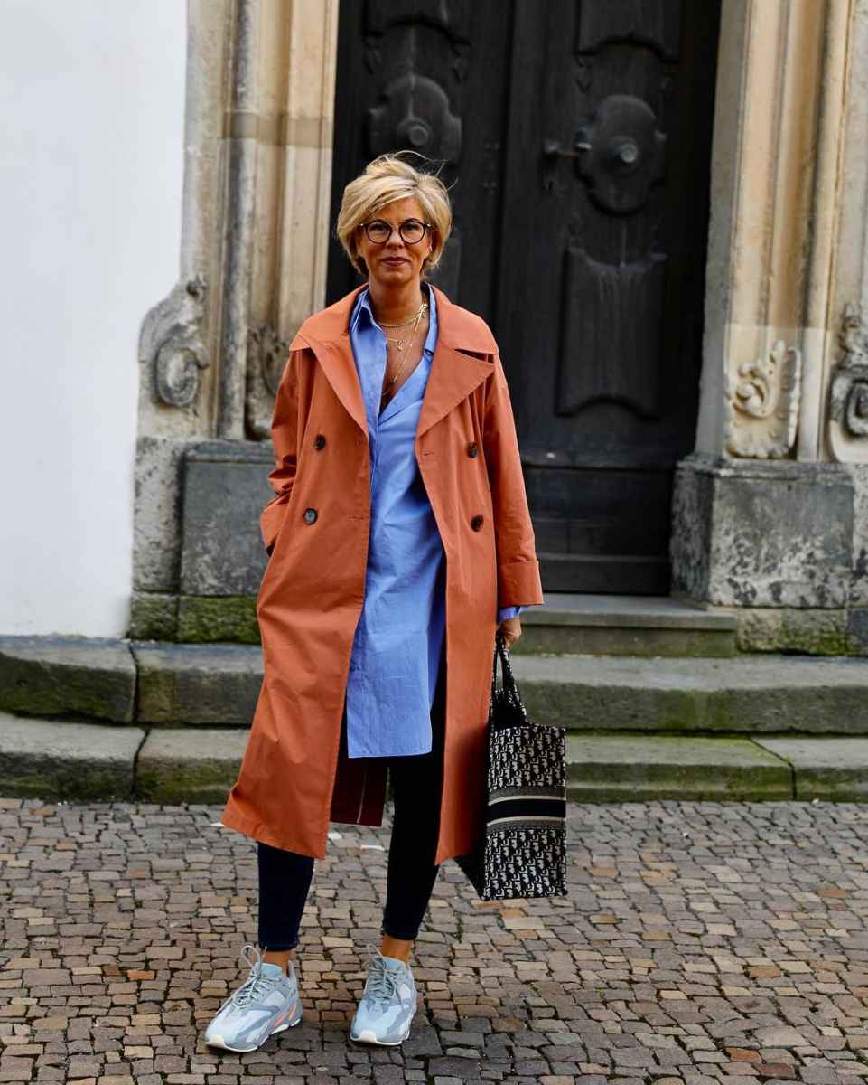 Модные цвета – черный, кофейный, беж, хаки, синий, огненно-рыжий. Обувь в этом случае подбирается соответственно модели – под классические тренчкоты хороши туфли и ботинки, под плащи в стиле «спорт» и « кэжуал» — кроссовки, кеды.