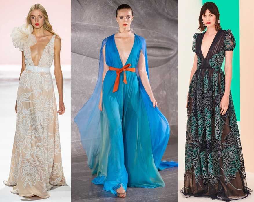 Настоящий тренд в вечерней моде 2020 и 2021 года — длинные V-вырезы в области декольте. Что может быть женственней и заманчивей? Если хотите, чтобы ваш мужчина не сводил с вас глаза в новогоднюю ночь или на романтическом свидании — это именно «тот» фасон.