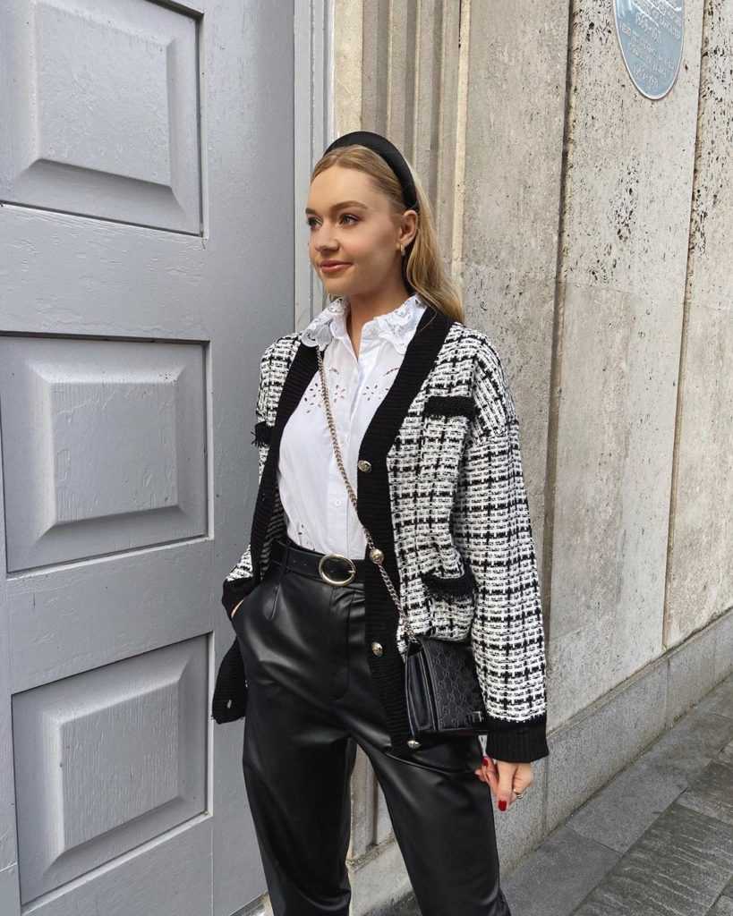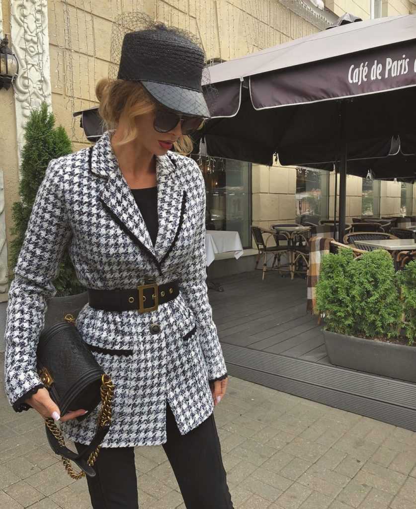 Самым элегантным примером весенней верхней одежды 2020-2021 стал классический твидовый пиджак, шарма которому придают металлические пуговицы. Актуальной весной будет как однобортная, так и двубортная модель пиджачка. Дизайн здесь возможный не только однотонный. Красиво будет смотреться твидовый пиджачок в клетку с рядом металлических пуговиц.