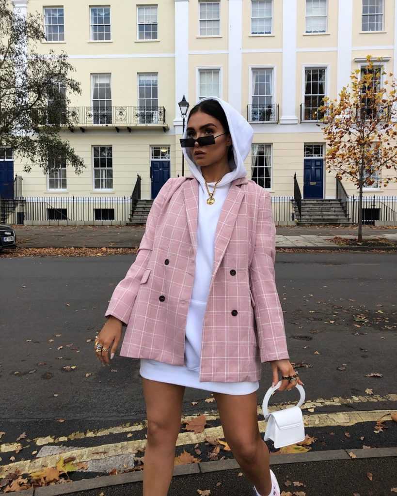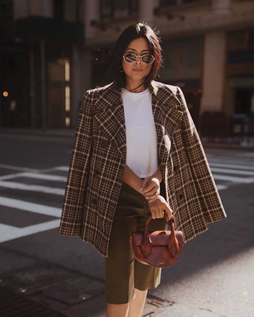 Несомненным хитом весеннего сезона 2020-2021 в верхней одежде стал удлиненный блейзер свободного покроя с супермодным клетчатым рисунком. В офисном аутфите подобный вариант верхней одежды просто незаменим. Для более ярких весенних образов можно выбрать клетку в розовых или красных тонах.