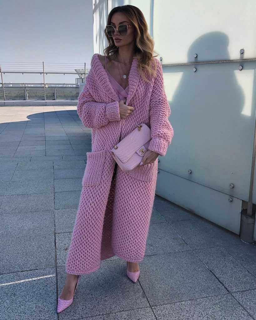 Самым уютным и притягательным вариантом весенней верхней одежды 2020-2021 по праву называют длинные вязаные кардиганы. В тренде и фактурная вязка, и оригинальные объемные рукава, и декор из перьев на подоле, и красочные оригинальные расцветки. Актуальной длиной модных весенних кардиганов будет не только миди, но и макси. Модельки в пол действительно выглядят восхитительно.