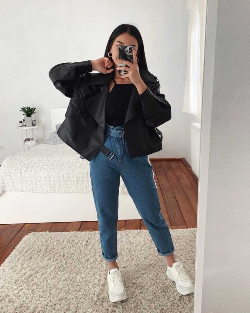 Этой весной носите укороченную косуху с брюками и юбкой с высокой посадкой