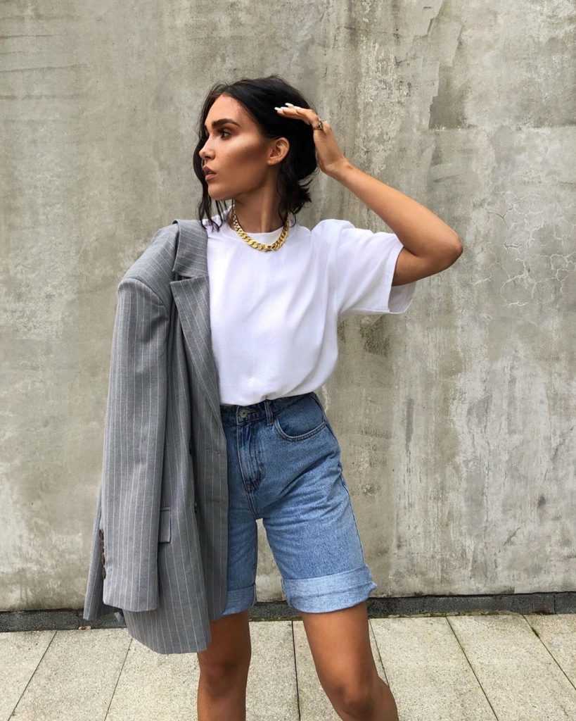 - Классические варианты – шорты и майка/футболка, и костюмы с ярким геометрическим орнаментом. Пальму первенства присвоили шортам с высокой или низкой посадкой в талии, свободного кроя, и чуть закруглёнными разрезами по бокам. Расцветка может быть абсолютно разнообразной.