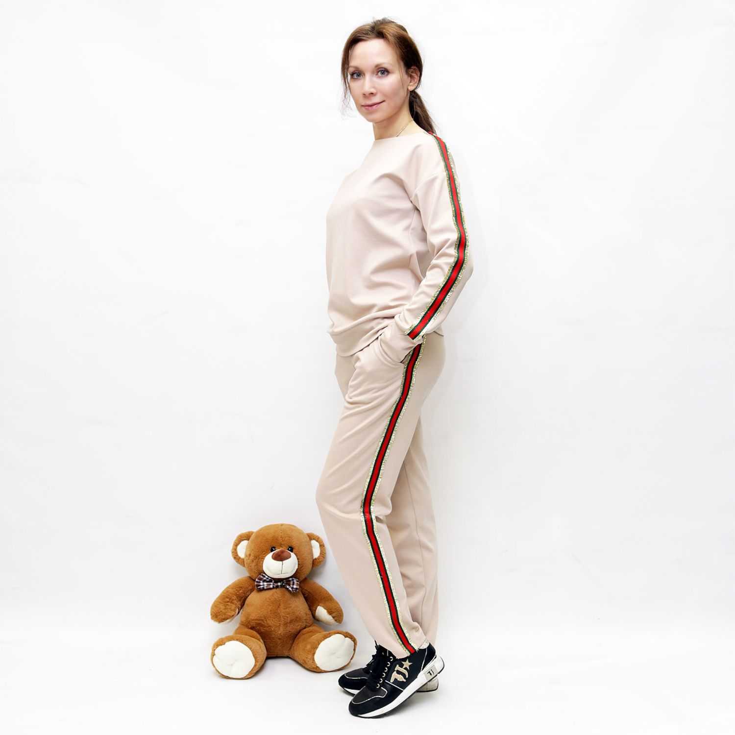 Костюмы со свободными штанами обычно шьют из трикотажа или чистого хлопка. В такой вещи тепло и комфортно даже в непогоду.