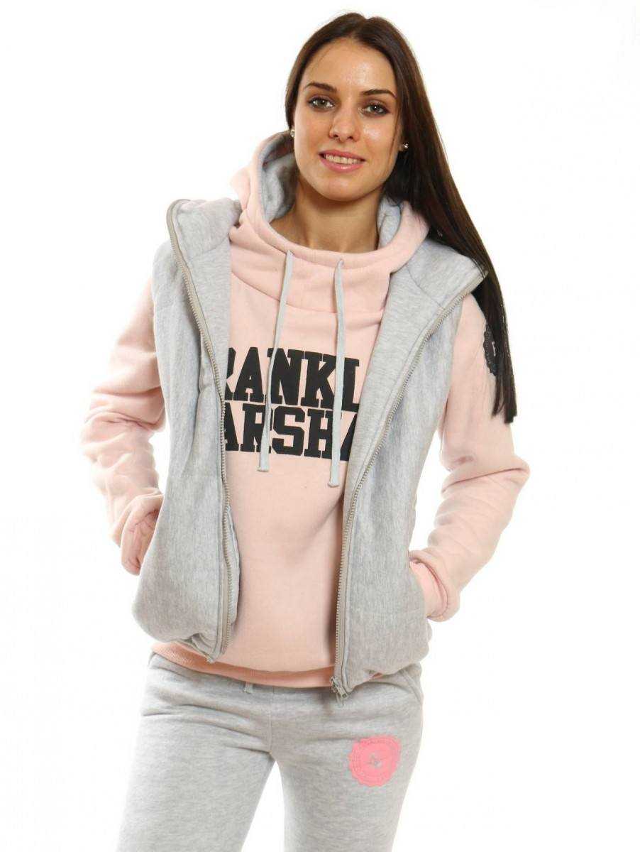 Костюм состоит из свободных брюк и худи или свитшота длиной чуть выше колена. Опять же, заниматься спортом в зале в таком комплекте неудобно, но одежда позволит не замерзнуть зимой и оставаться стильной девушкой.