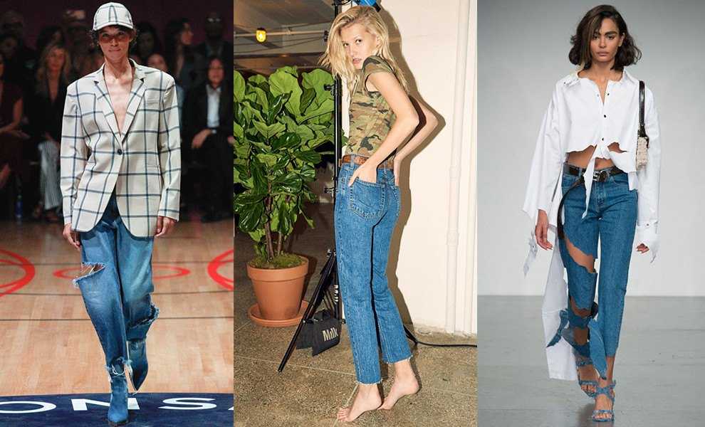 Разнообразить внешний вид можно и штанами, заимствованным из мужского гардероба. Джинсы бойфренды лучшая альтернатива обтягивающим фасонам. Главное, не перестараться с размером, ведь особенность фасона в ощущении большемерности, поэтому, размер должен быть идеален в сочетание с пропорциями тела. Рваные и потёртые варианты моделей на вершине популярности. При желании дополнить гардероб таким фасоном, стоит отдать предпочтение неполным надрывам, преимущественно вертикальным.