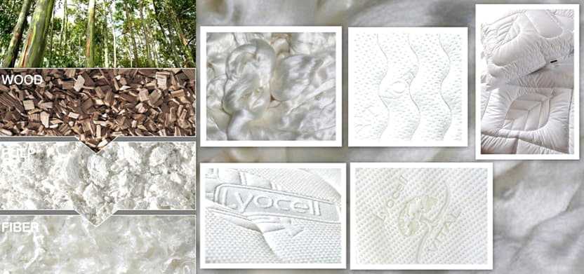 Эвкалиптовое волокно (тенсел) является экологичным материалом, и идеально подходит для создания постельного белья. Его изготавливают из необработанных пестицидами и другими удобрениями стеблей эвкалипта, из которых получают целлюлозу. В процессе производства целлюлозу пропускают через специальный химический состав, при этом при изготовлении не используются опасные для окружающей среды вещества, а готовое волокно получается очень лёгким и тонким, но достаточно прочным и упругим. Лёгкость материала достигается благодаря его полой структуре.