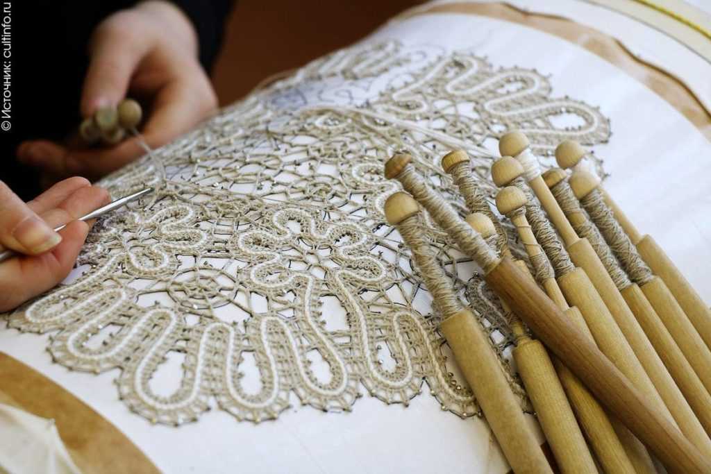 Девочек начинали обучать плетению с пяти лет. Самых искусных, говорят, даже не выдавали замуж, чтобы не отвлекать от коклюшек. Как правило, в семье жило несколько поколений мастериц — бабушка, мама, дочери… Работали кружевницы за станком по 16 часов в день. В одном узоре переплетали до ста нитей.