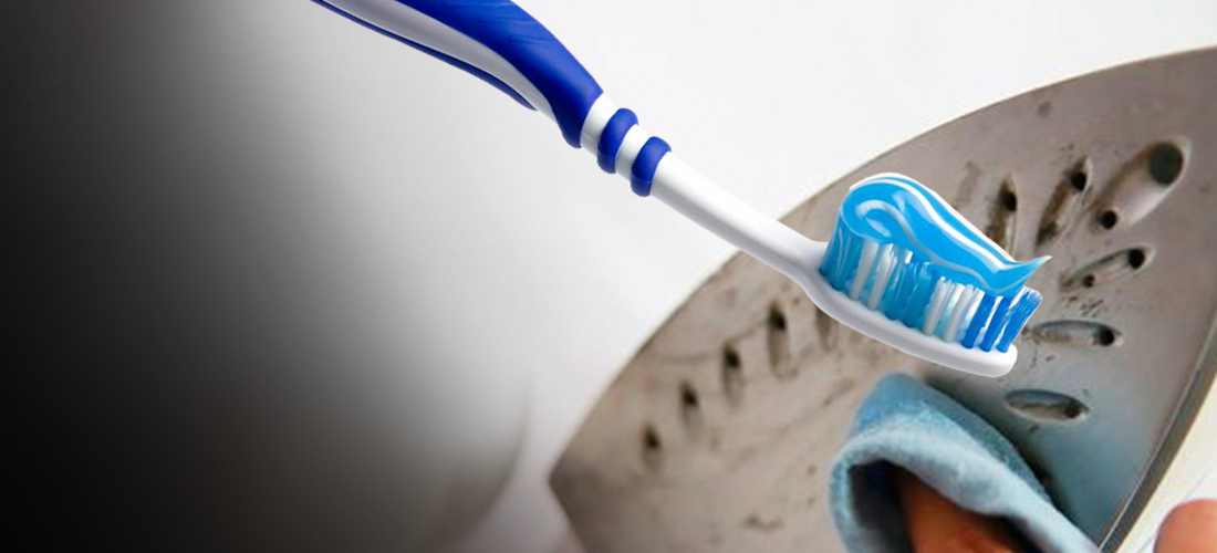 Зубная паста подходит для очистки поверхности из нержавеющей стали. Для этого необходимо нанести средство на предварительно разогретую подошву. Повысить эффект поможет применение старой зубной щетки, она позволит оттереть нагар. На финальном этапе поверхность следует протереть влажной тканью, вытереть насухо.