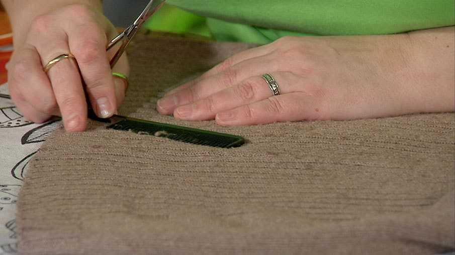 Этот способ подходит, если на изделии образовалось немного крупных катышек. Нужна расческа с тонкими и густыми зубцами.