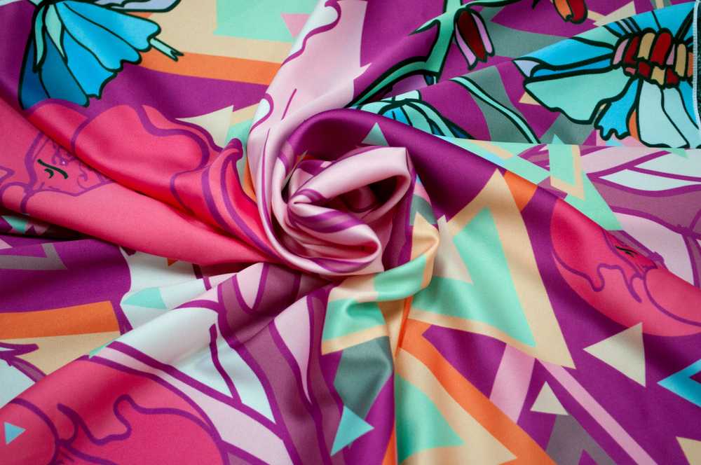 Набивная атласная ткань используется для пошива вечерней одежды и постельного белья.