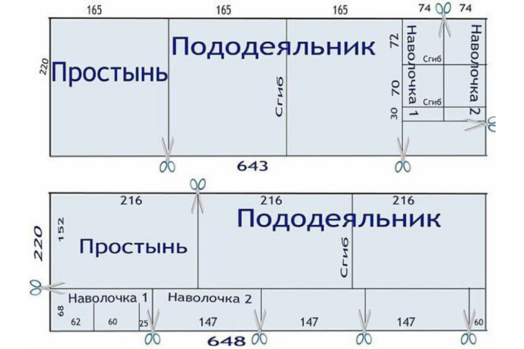 Раскрой полуторного комплекта постельного белья.