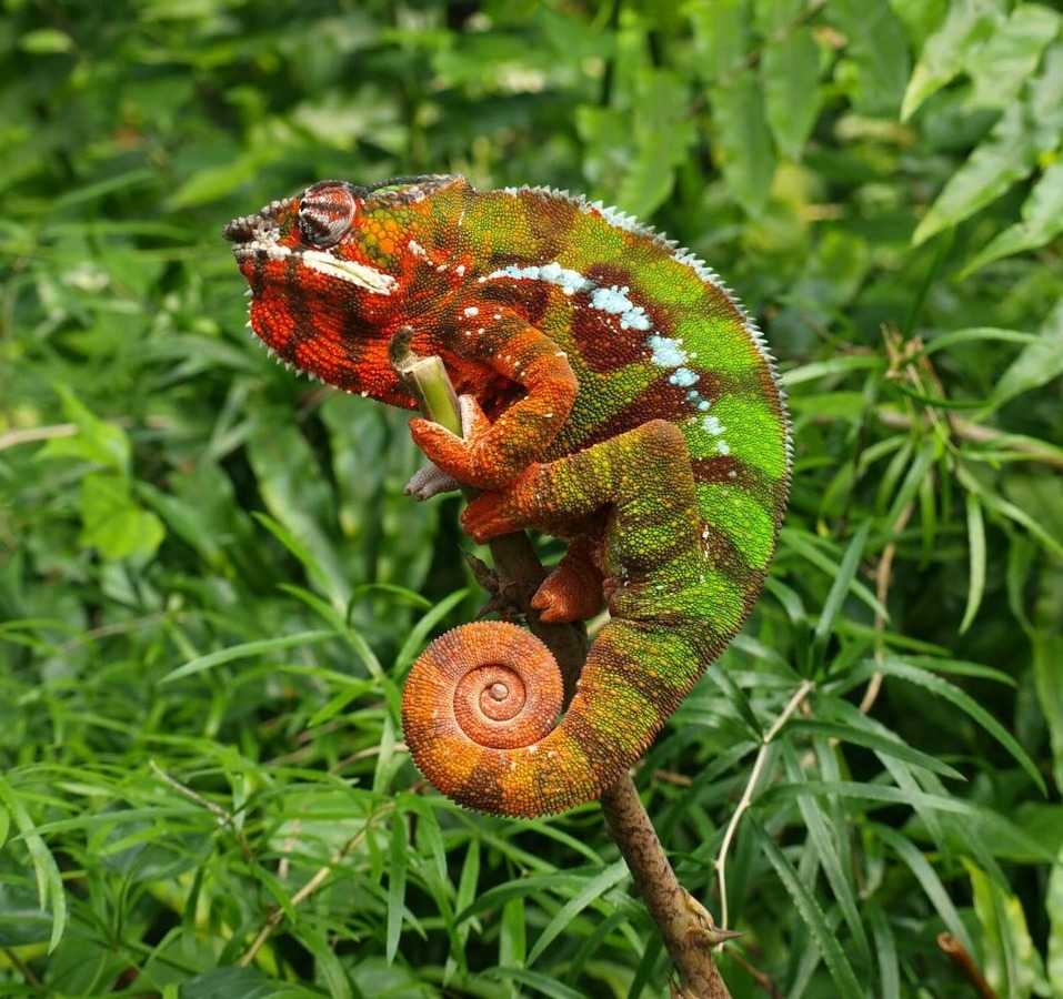 Хамелеоны привлекают нас, прежде всего, своей яркой окраской, которая легко меняется под окружающую среду, своим забавным хвостом, завитым в спираль, любопытным способом передвижения, а также виртуозным владением длинным языком, благодаря которому питомец всегда сыт.